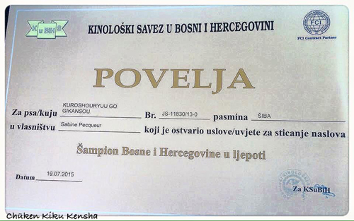 KURO notre import Japon a participé au DogShow en Bosnie (3 jours), a obtenu d'excellents résultats :
