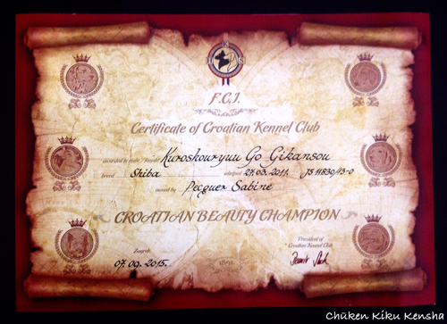 C'est officiel, KURO notre import Japon est Champion de Croatie, nous avons reçu son diplôme !