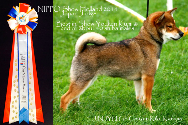 * 17-08-2014 NIPPO SHOW HOLLAND Puppy : Very Promising + BEST IN SHOW PUPPY & 2nd of about 40 shiba males, all categories mixed ! (Japan Judge) "PERFECT sesame, GOOD eyes, GOOD overall balanced, WELL GOOD boned, GOOD tail..."
